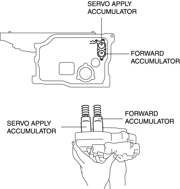 1. Install the accumulator springs, accumulators and primary control valve body.
