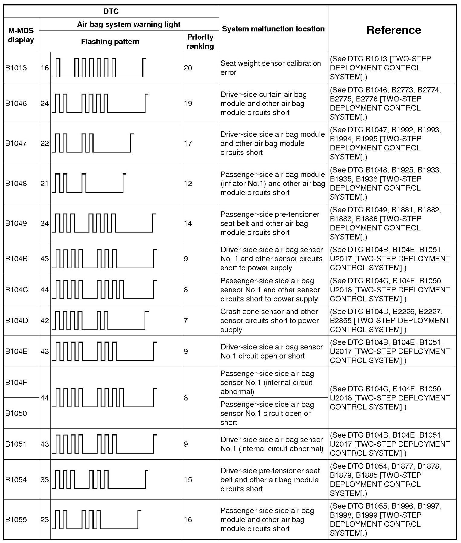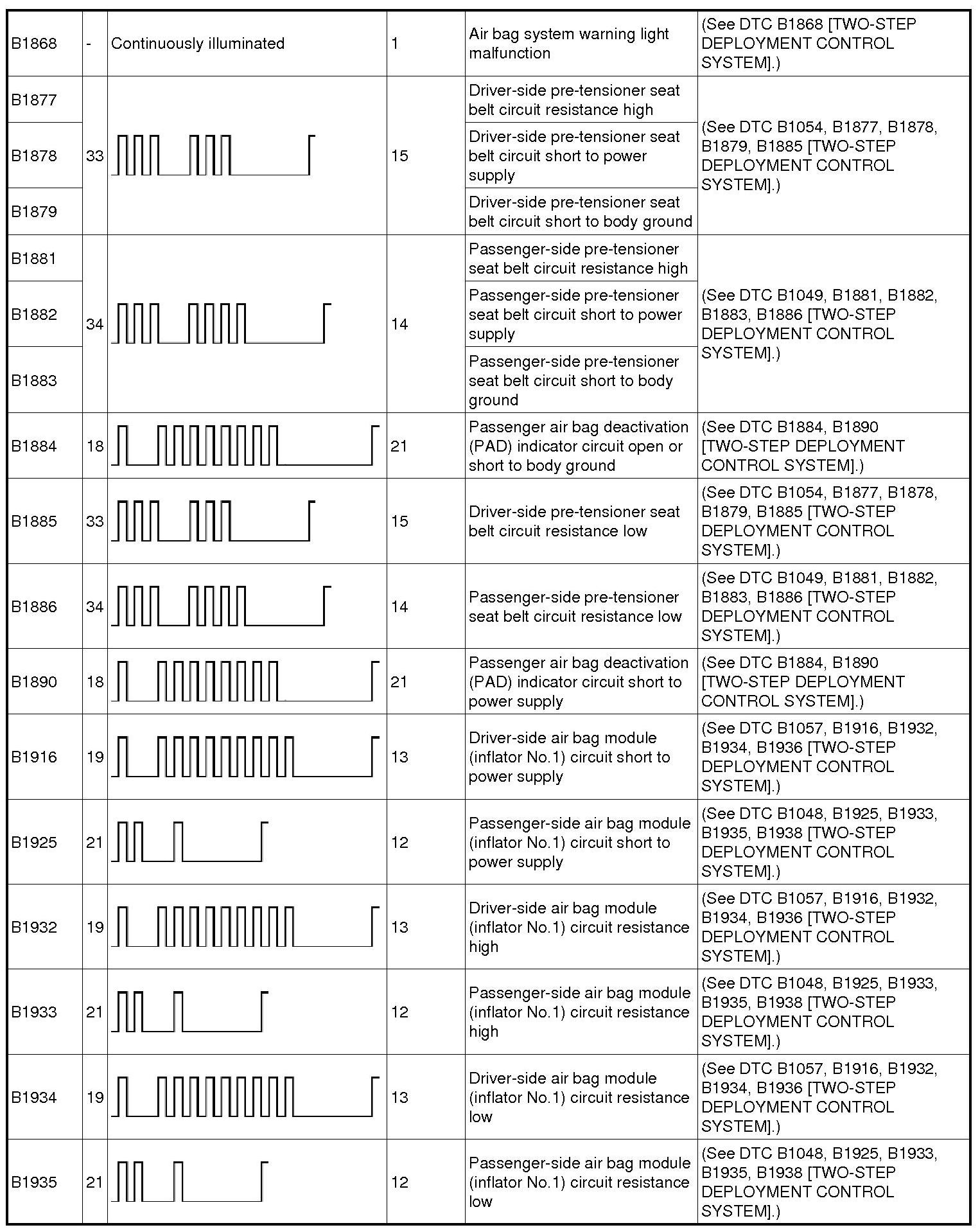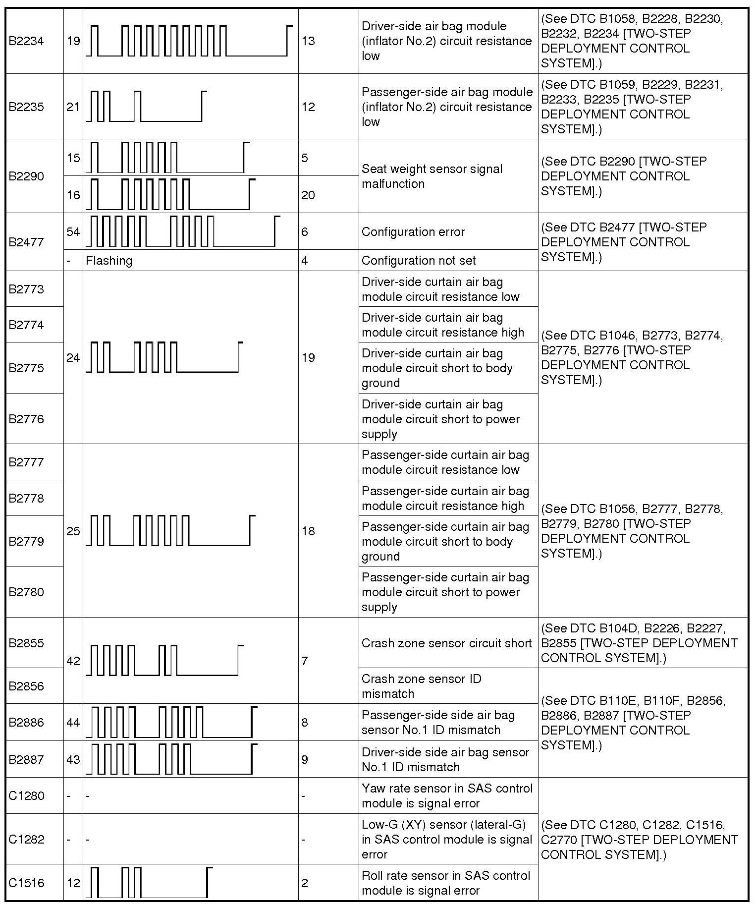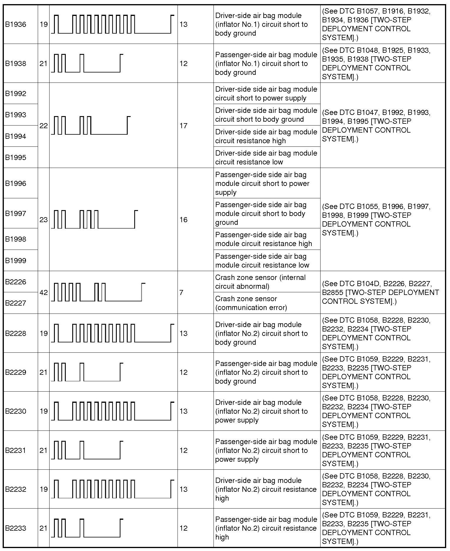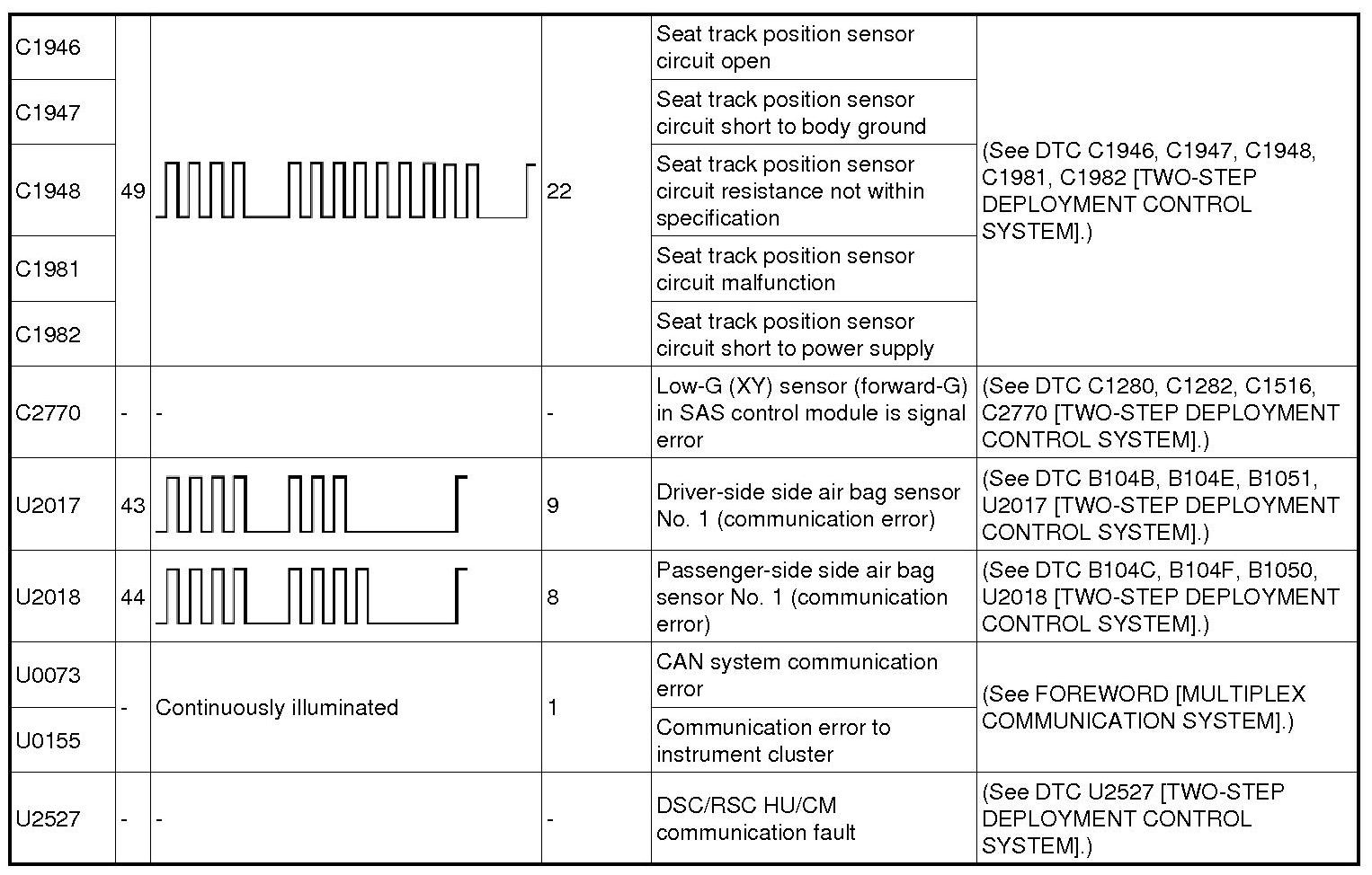 DTC TABLE [TWO-STEP DEPLOYMENT CONTROL SYSTEM]