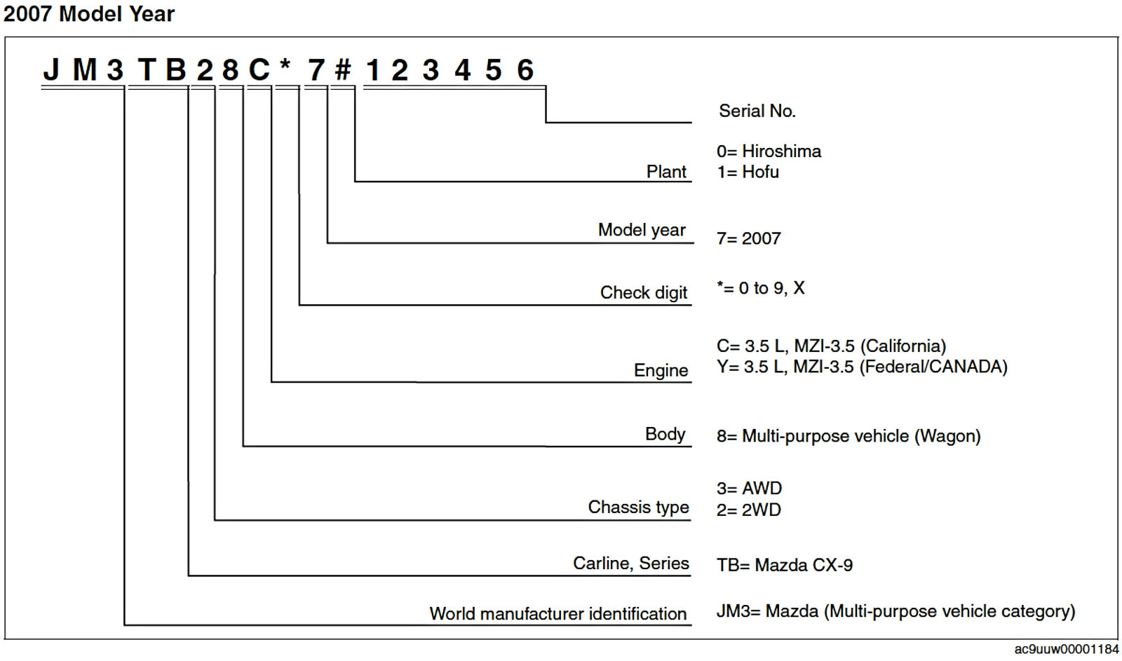 VEHICLE IDENTIFICATION NUMBER (VIN) CODE