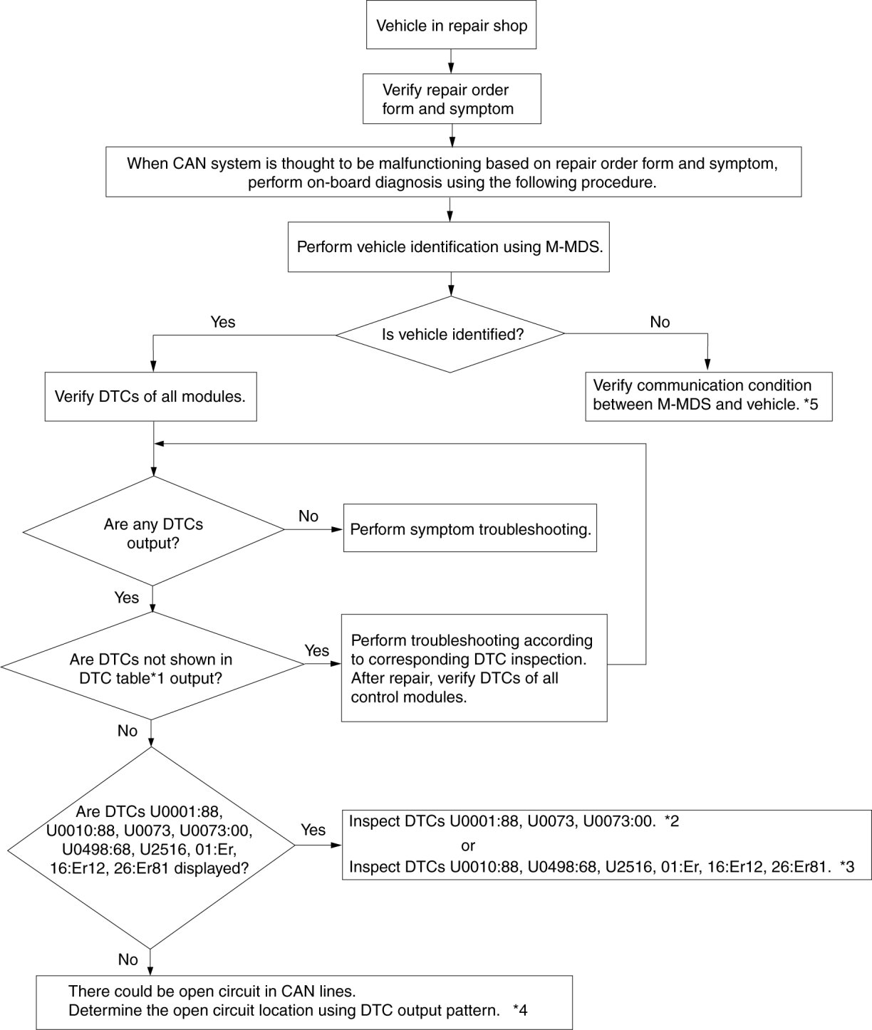 - If the CAN system is considered to be the cause of the malfunction based on the repair order form and the malfunctioning symptom, follow the Troubleshooting Procedure.