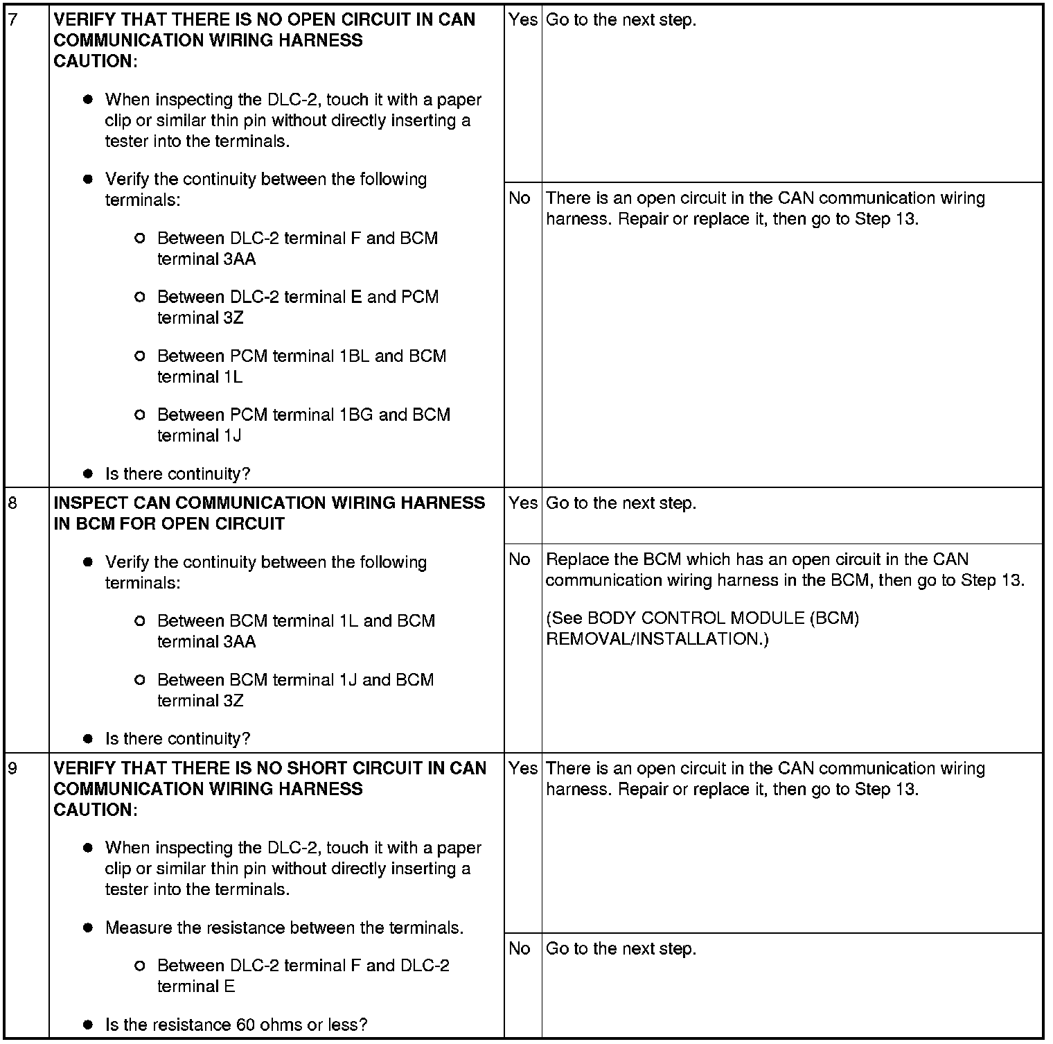 - Possible causes of communication errors between the M-MDS and vehicle include communication circuit interruption due to an open circuit in the CAN communication wiring harness, or poor contact of connector terminals, or a BUS OFF condition due to a short circuit in the CAN communication wiring harness.