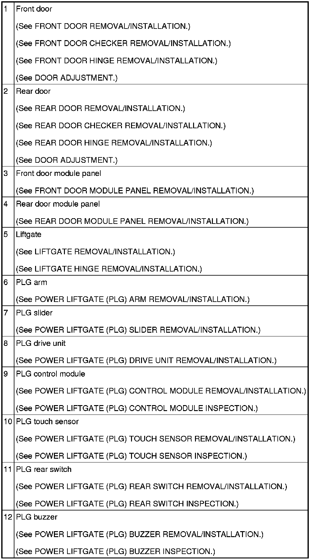 DOOR AND LIFTGATE LOCATION INDEX