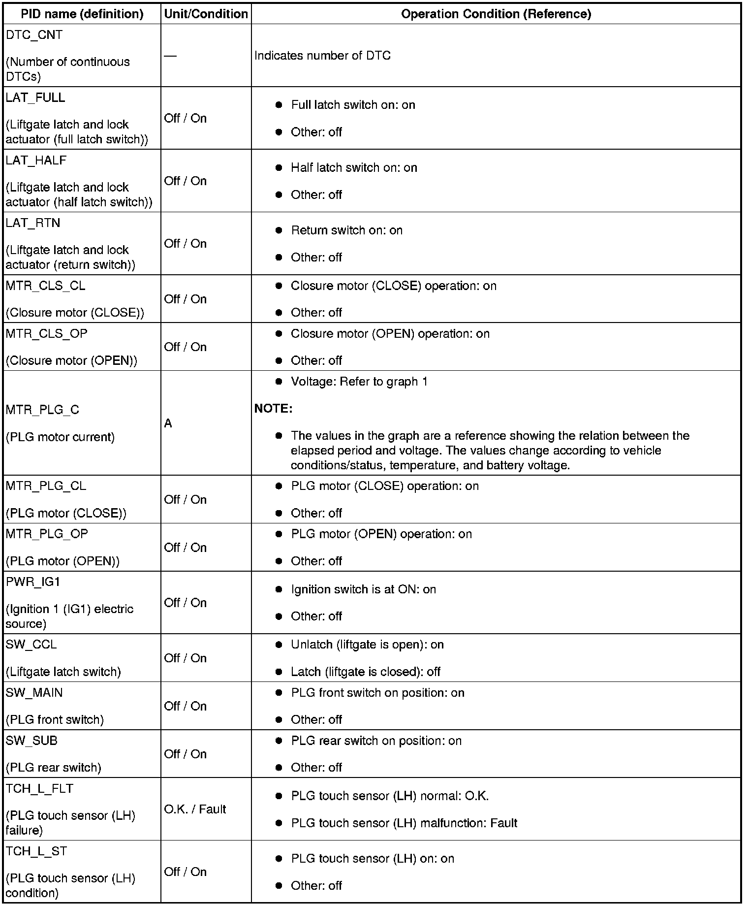 PID/DATA MONITOR TABLE [POWER LIFTGATE (PLG) SYSTEM]
