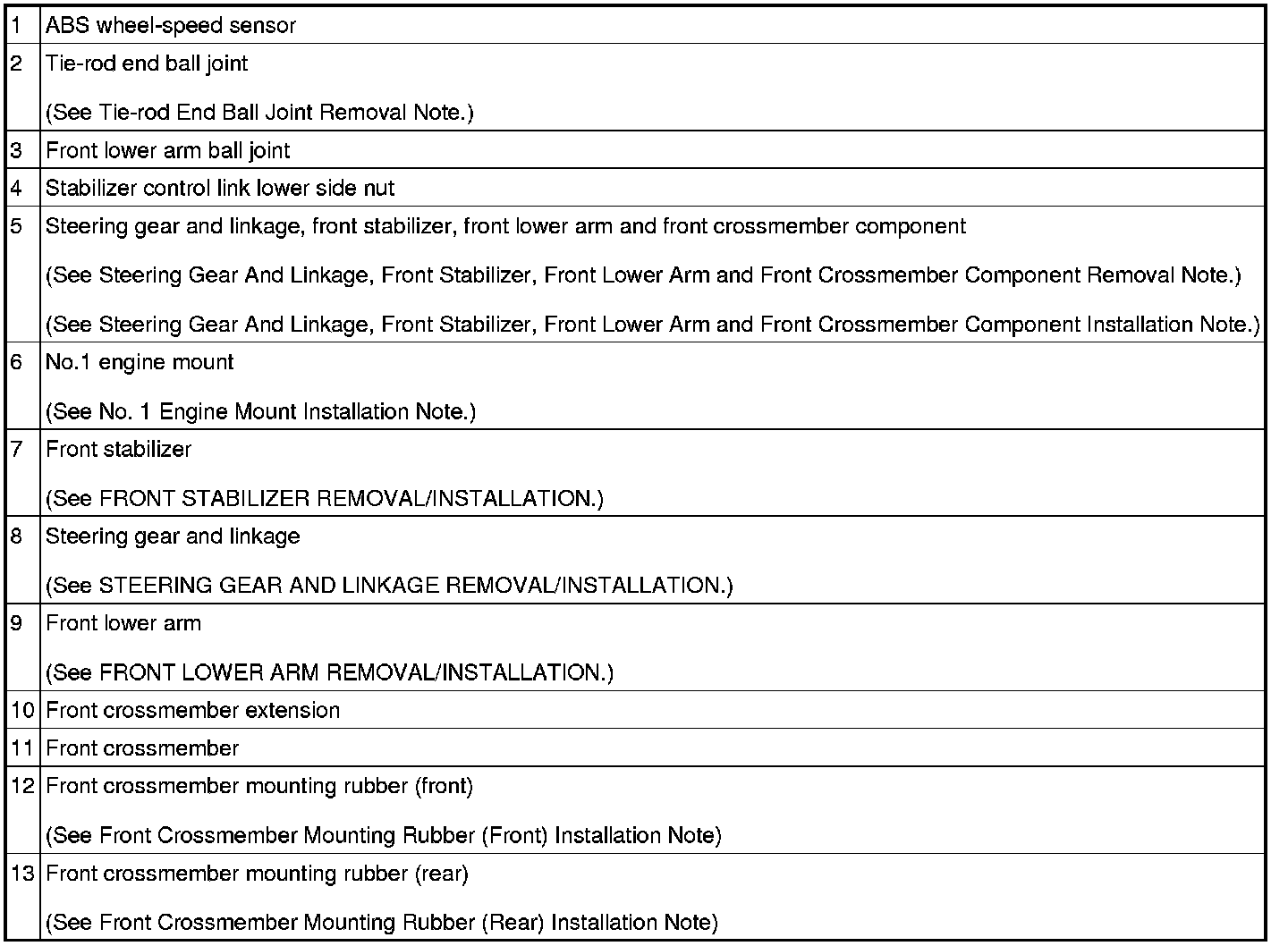 Steering Gear And Linkage, Front Stabilizer, Front Lower Arm and Front Crossmember Component Removal Note