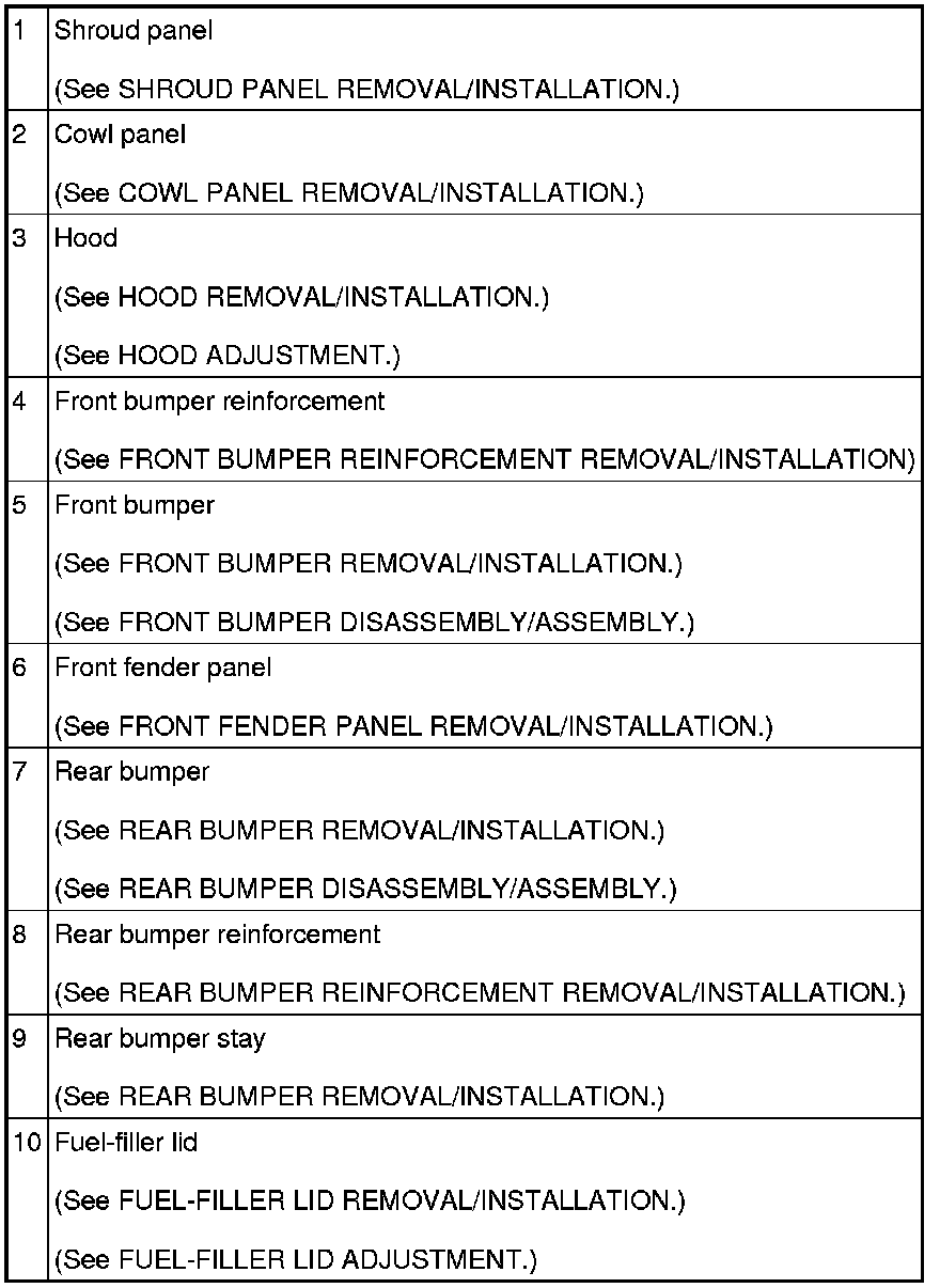 BODY PANELS LOCATION INDEX