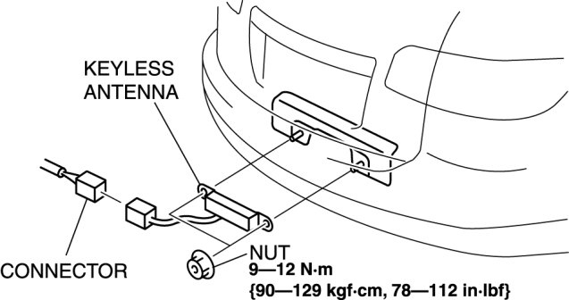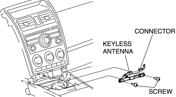 3. Disconnect the connector, then remove the keyless antenna.