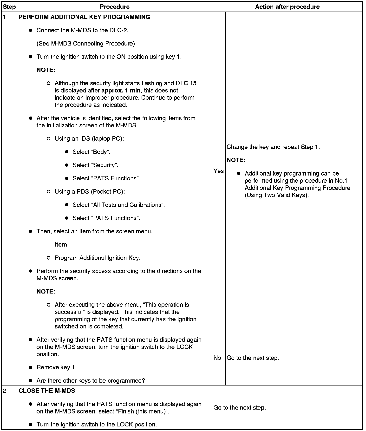 - If a key ID number cannot be programmed and DTC 15 is displayed, the maximum number of programmed keys may have been reached. Verify the number of programmed keys using the M-MDS.