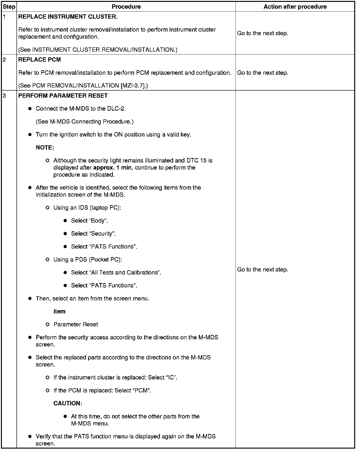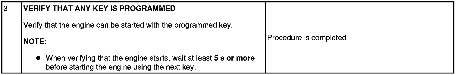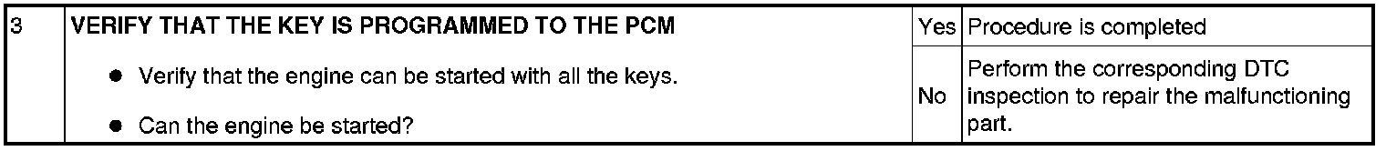 Immobilizer System-Related Parts Service and Programming Procedure Table