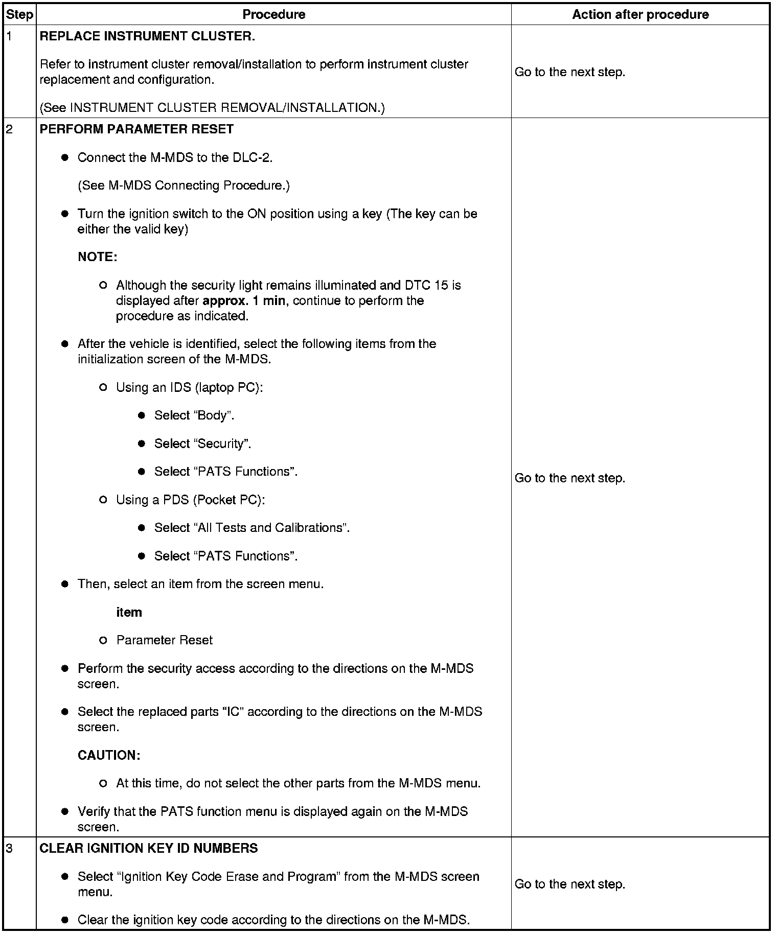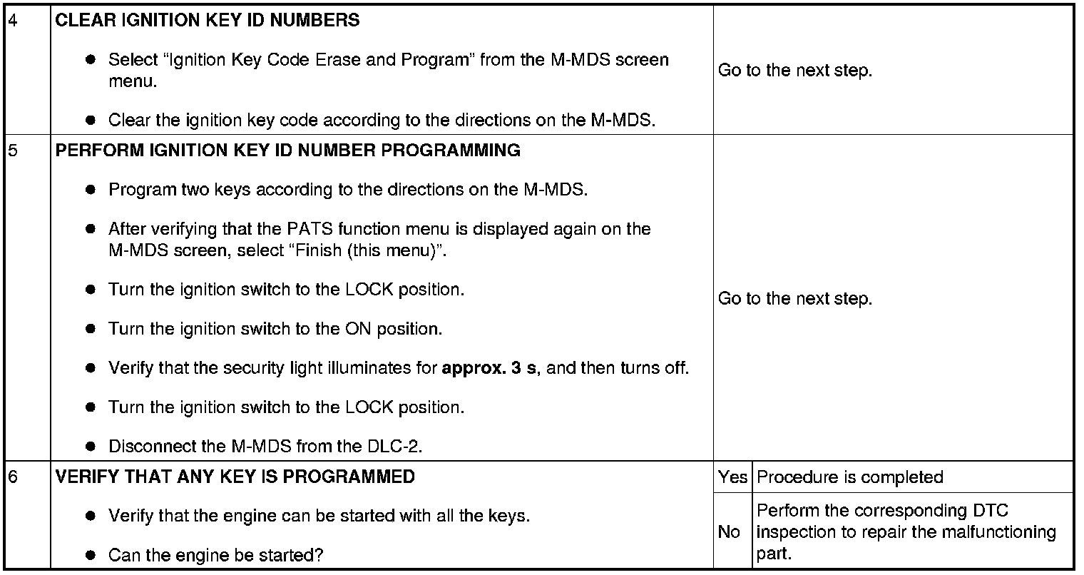 No.6 Programming Procedure Due to Simultaneous Replacement of Immobilizer System-related Parts (PCM and Instrument Cluster)