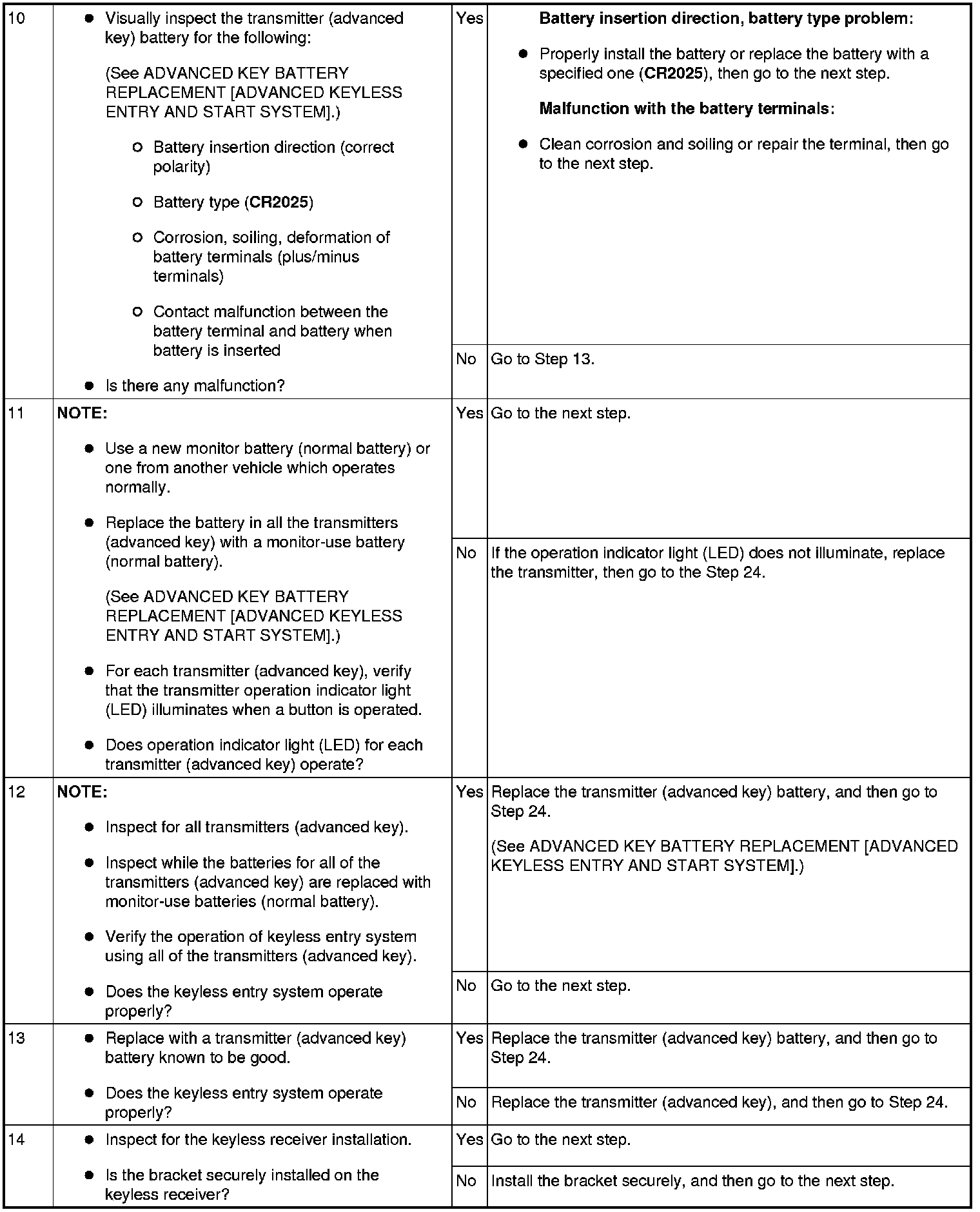 NO.1 DOOR CANNOT BE LOCKED/UNLOCKED BY TRANSMITTER (ADVANCED KEY) [ADVANCED KEYLESS ENTRY AND START SYSTEM]