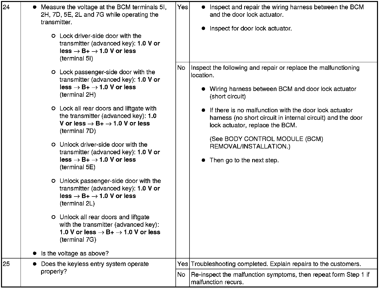 No. 1 Door Cannot Be Locked/Unlocked By Transmitter (Advanced Key)