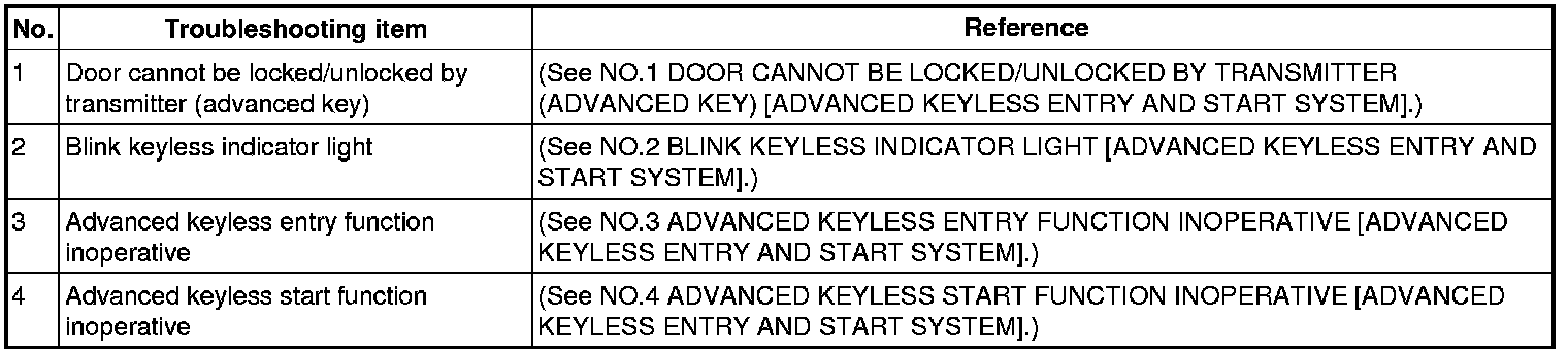 SYMPTOM TROUBLESHOOTING CHART [ADVANCED KEYLESS ENTRY AND START SYSTEM]