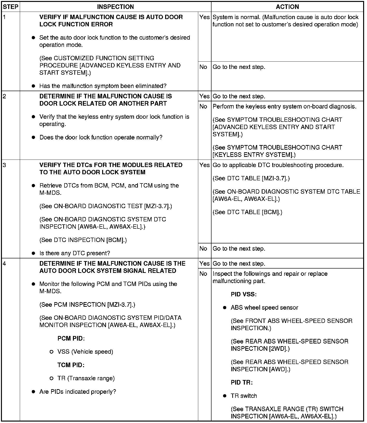 No.1 AUTO DOOR LOCK FUNCTION DOES NOT OPERATE [AUTO DOOR LOCK SYSTEM]