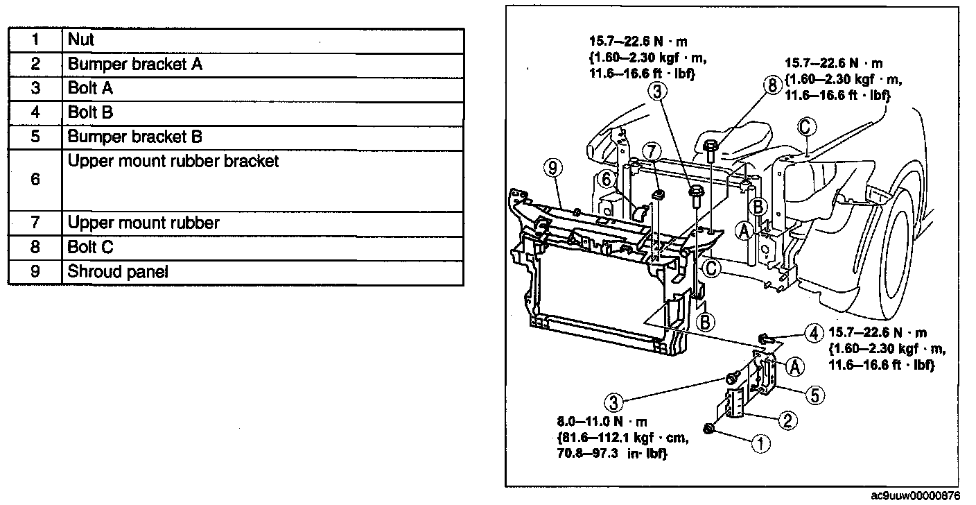 1. When installing new parts, measure and adjust the body as necessary to conform with standard dimensions.