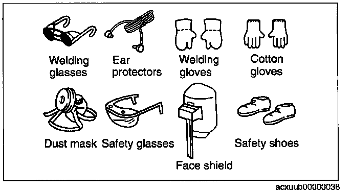 - Protective head covering and safety shoes should always be worn. Depending upon the nature of the work, gloves, safety glasses, ear protectors, face shield, etc., should also be used.
