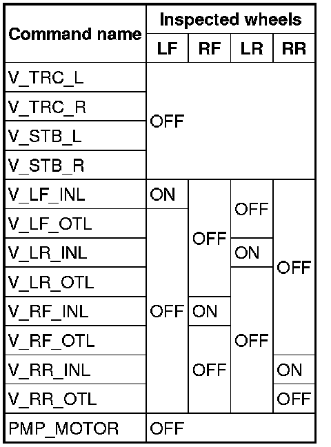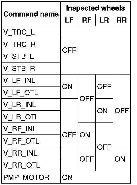 3. Set up an active command mode inspection according to the combination of commands below. Brake pressure retention