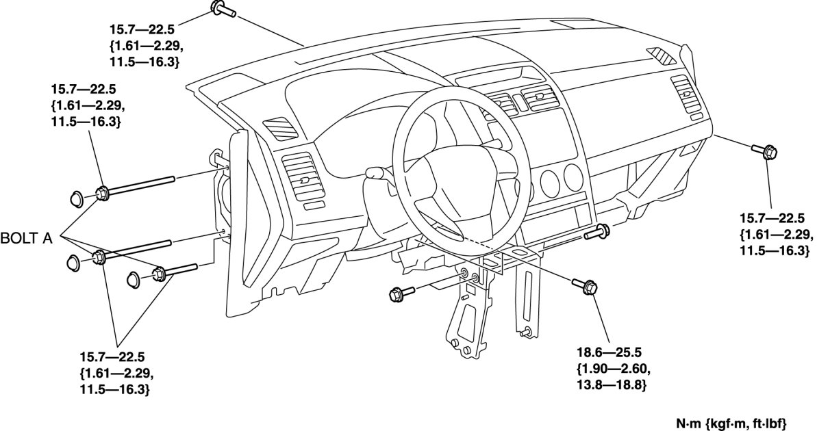 20. Remove the dashboard installation bolts as shown in the figure.