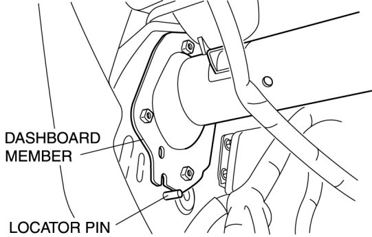 - When verifying the position of the dashboard member, verify visually with the locator pin from the underside of the dashboard.