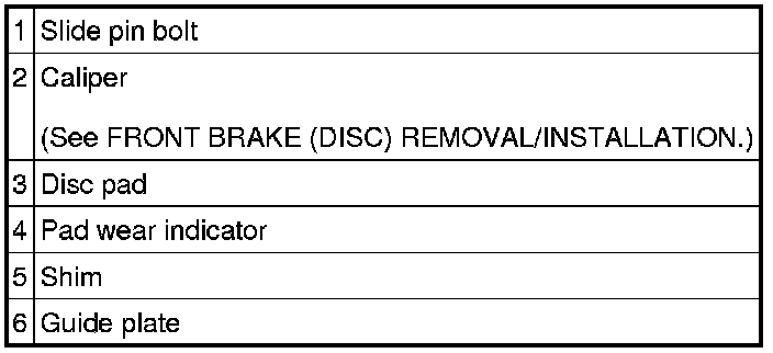 DISC PAD (FRONT) REPLACEMENT 1.