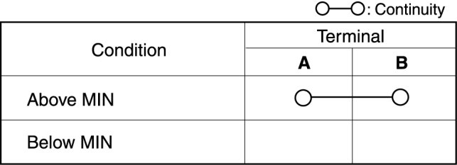 2. Inspect for continuity according to fluid level between the brake fluid level sensor terminals.