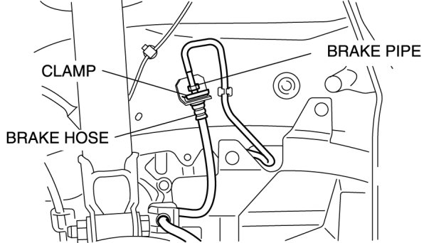 11. After the inspection, remove the SSTs, install the brake hose, clamp, and brake pipe to the original positions, and then bleed the air from the brake line.