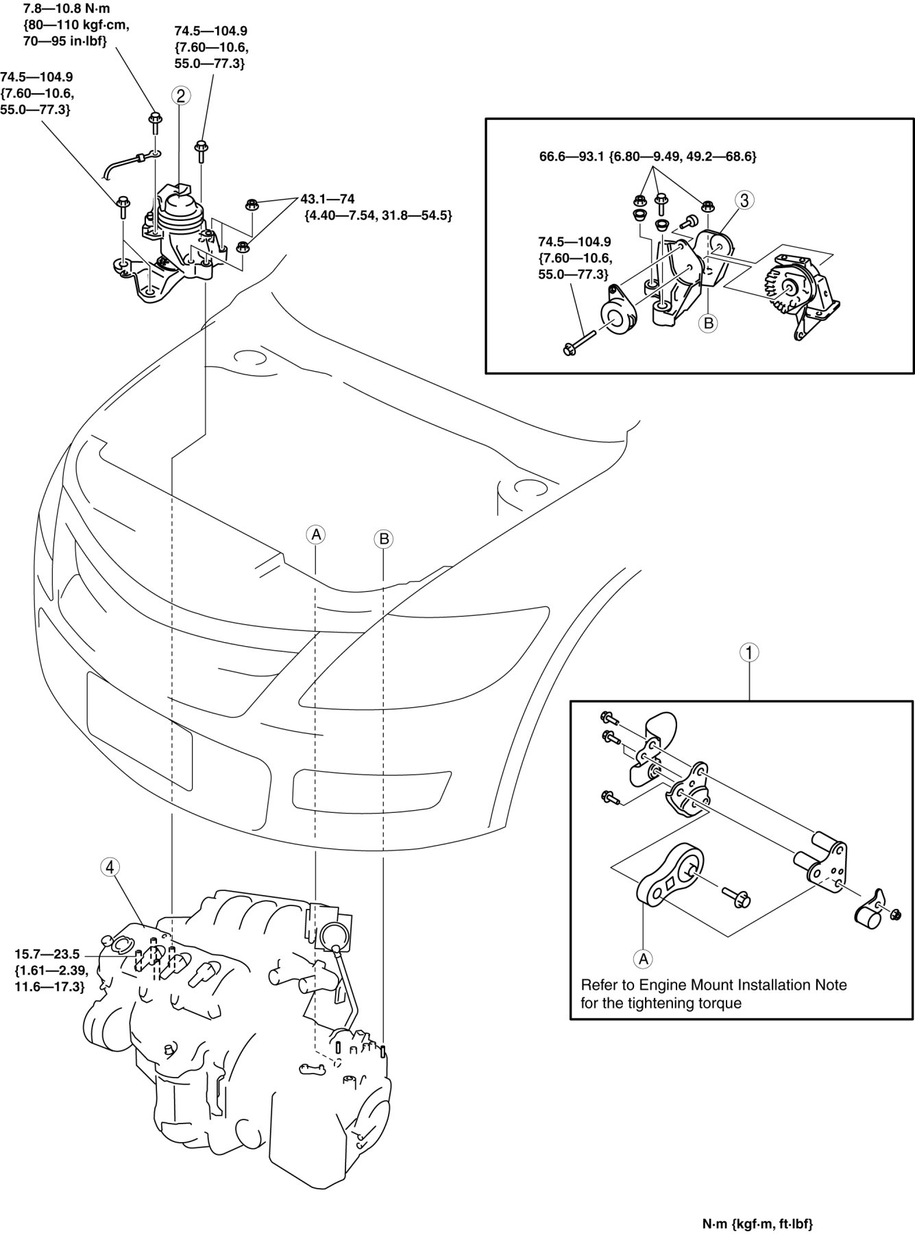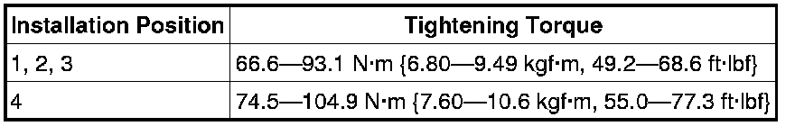 - Bolt A, B: 93.1-116.6 Nm {9.5-11.8 kgf-m, 68.7-85.9 ft-lbf}