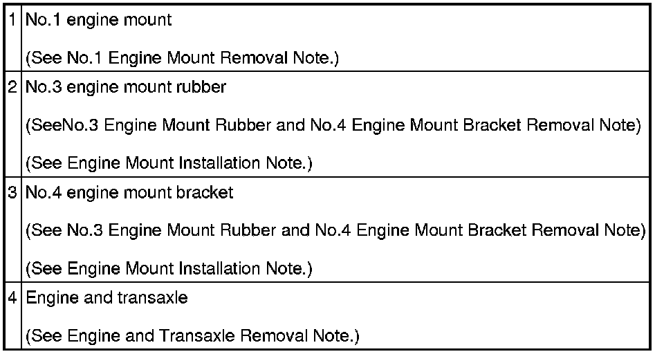 No.3 Engine Mount Rubber and No.4 Engine Mount Bracket Removal Note