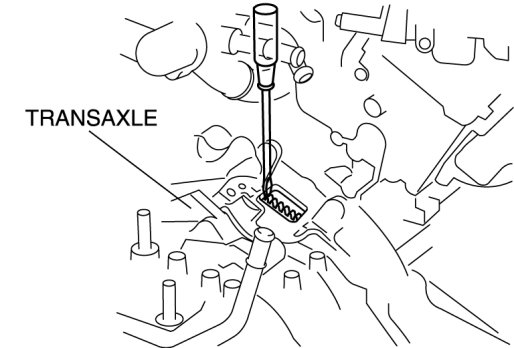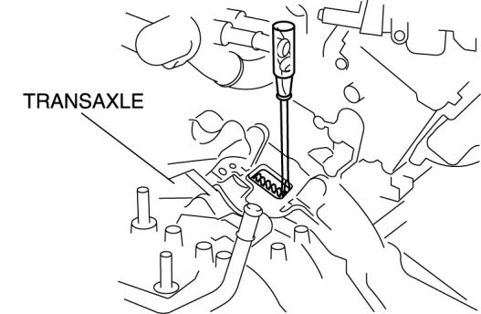 1. Set a flathead screwdriver to the drive plate in the position indicated in the figure to lock the crankshaft rotation.