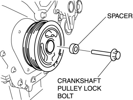 3. Remove the crankshaft pulley lock bolt and spacer.