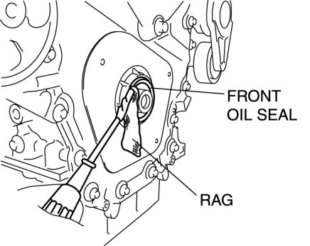 - Apply clean engine oil to the front oil seal bore in the engine front cover.