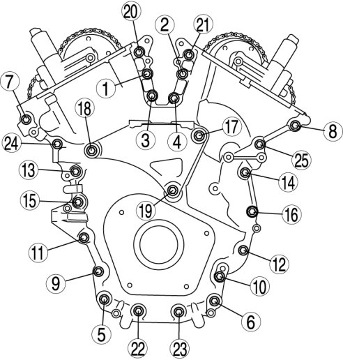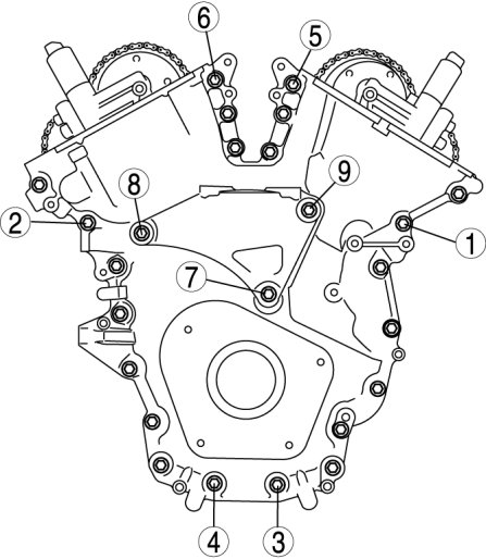 b. Tighten the engine front cover bolts in the order in 2 steps in the order shown in the figure.