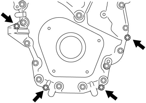 2. Install 4 of the engine front cover bolts (finger tightened) into the 4 threaded holes in the engine front cover.