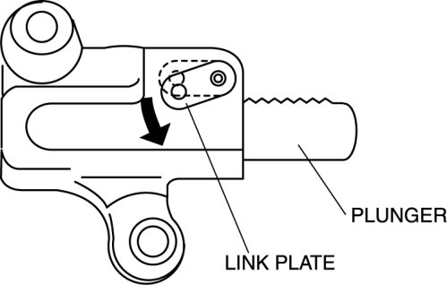 4. Push down the link plate of the timing chain tensioner and release the plunger lock.