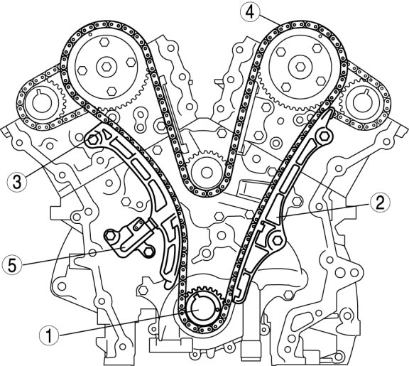 - When the timing chain is replaced with a new one, mark the new timing chain at the same positions as the removed timing chain.