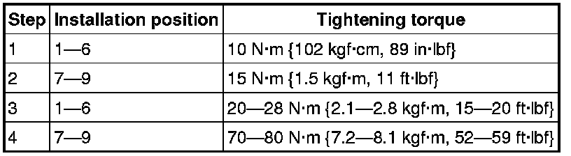 - Tighten to 10 Nm {102 kgf-cm, 89 in-lbf}.
