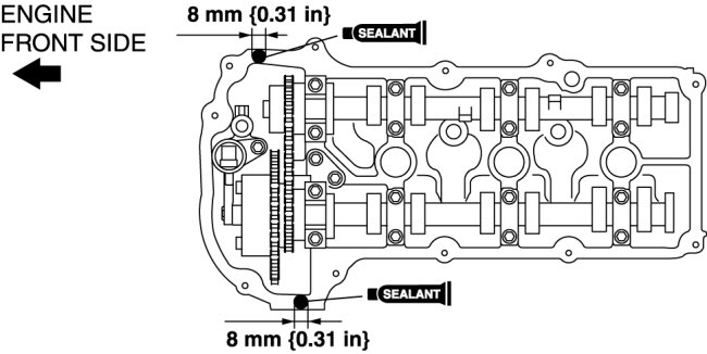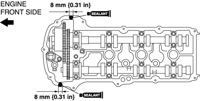 - Install the cylinder head cover before the applied sealant starts to harden.