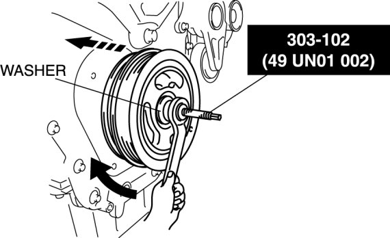 - Do not rotate the crankshaft counterclockwise. The timing chains may bind, causing engine damage.