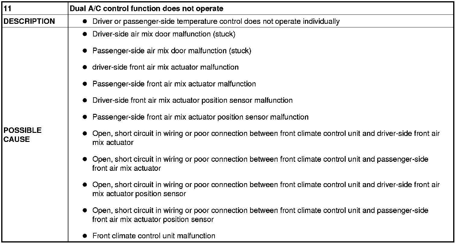 No. 11 Dual A/C Control Does Not Operate