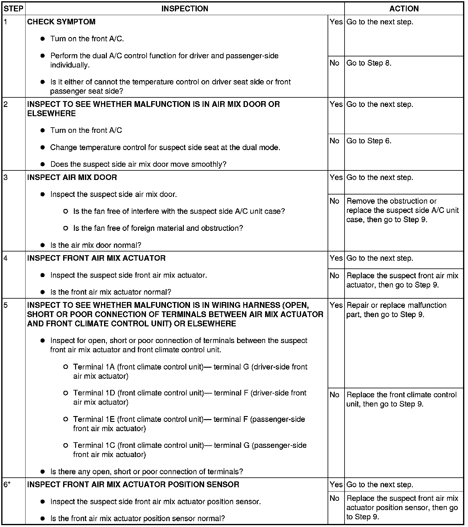 NO.11 DUAL A/C CONTROL DOES NOT OPERATE