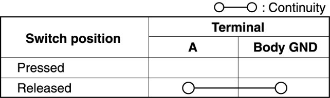 door switch terminal and the body ground is as indicated in the table.