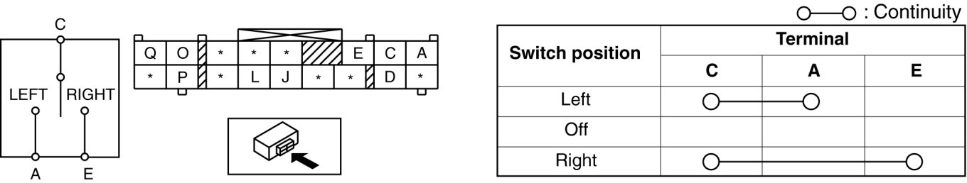 Verify that the continuity between the light switch terminals is as indicated in the table.