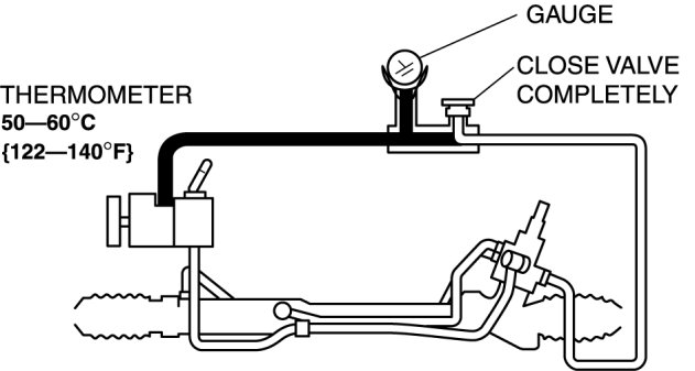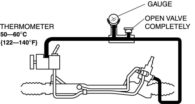 9. Turn the steering wheel fully to the left and right, then measure the fluid pressure generated at the gear housing.