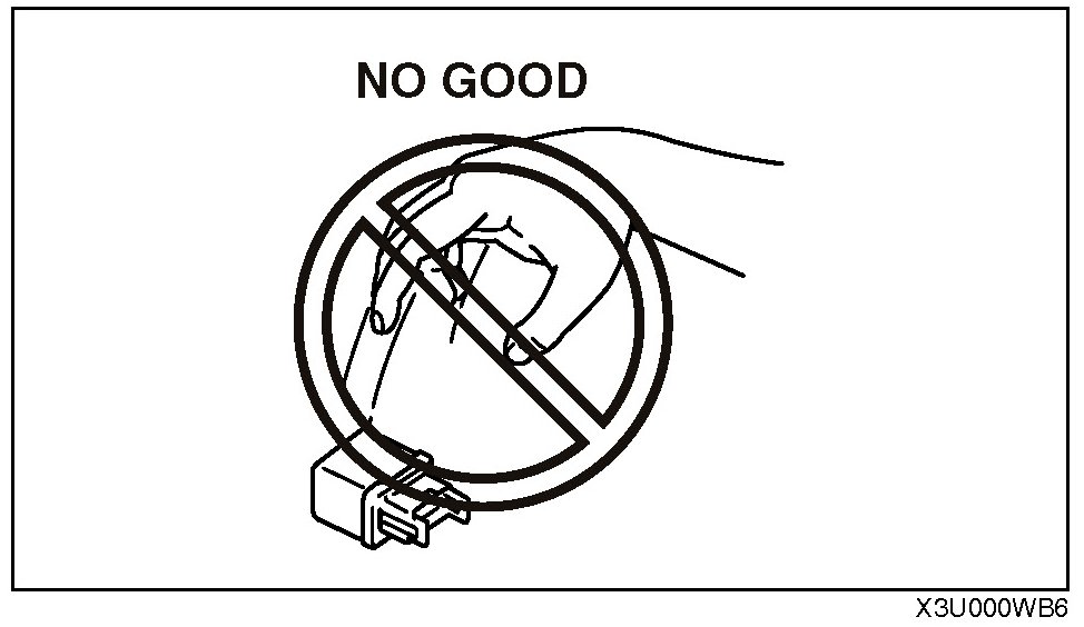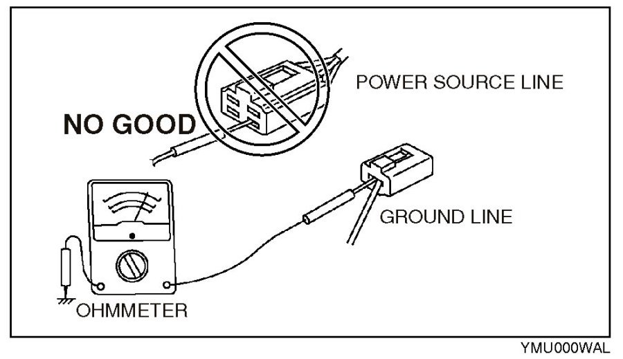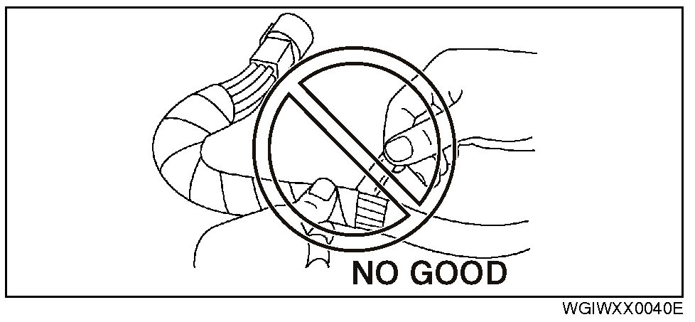 - When a tester is used to inspect for continuity or measuring voltage, insert the tester probe from the wiring harness side.