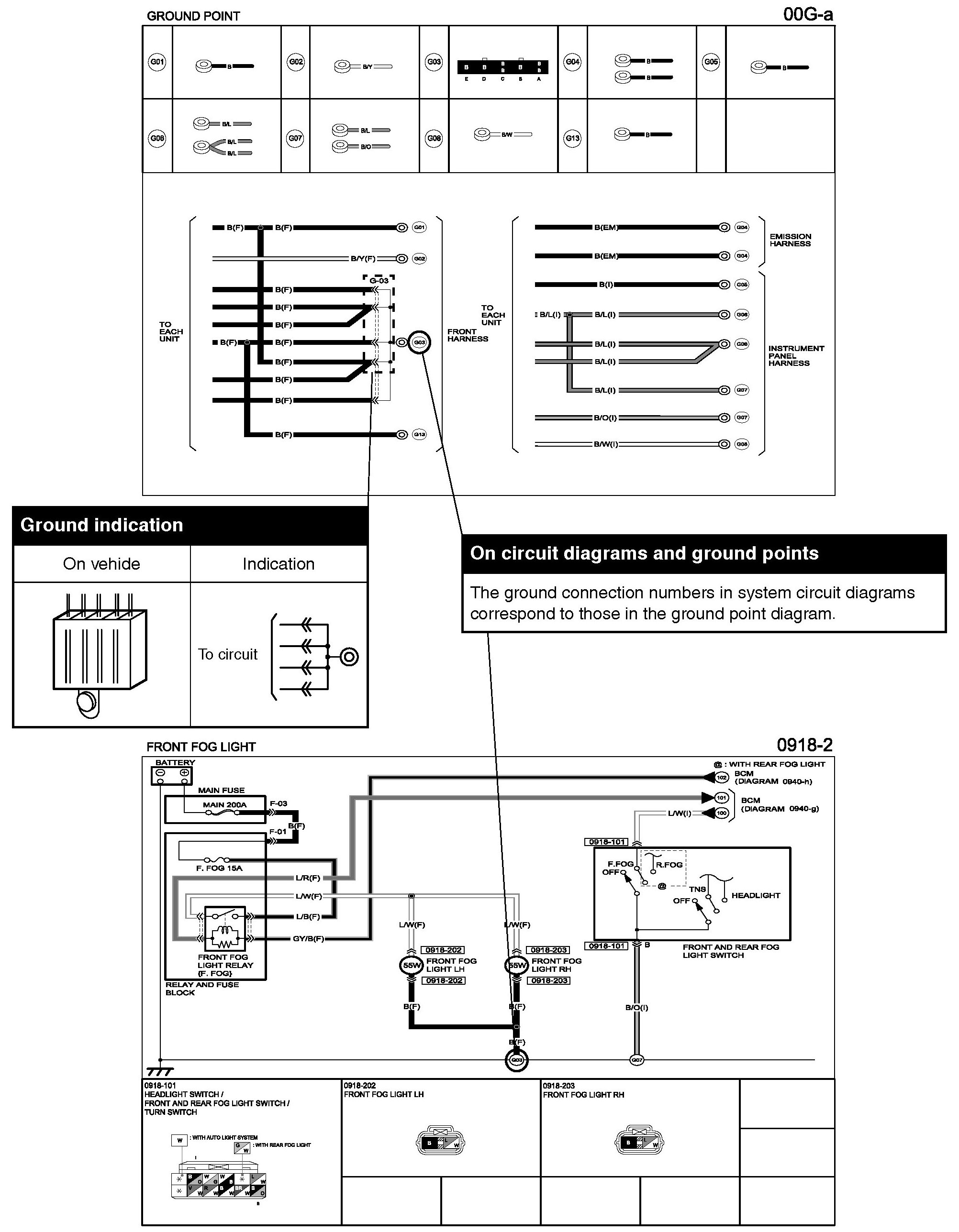 This shows ground points of the harness.