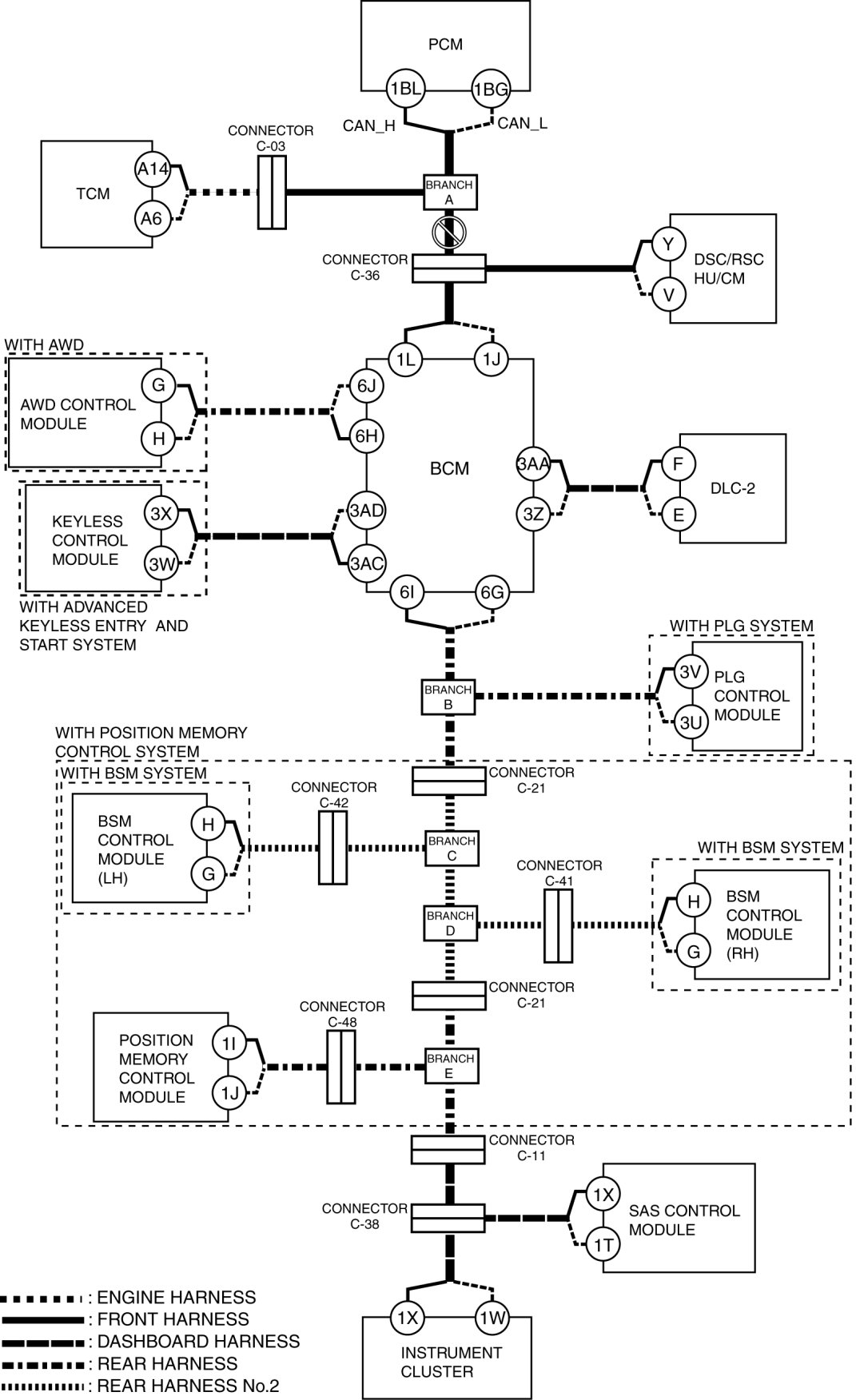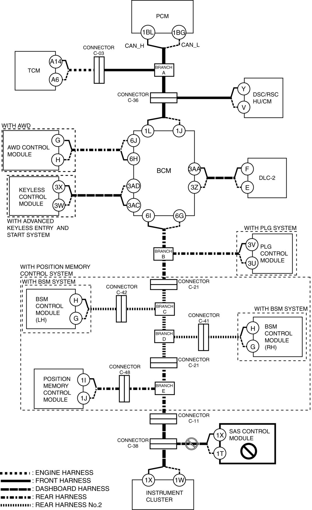 - Wiring harness between DSC/RSC HU/CM terminal Y and connector C-36