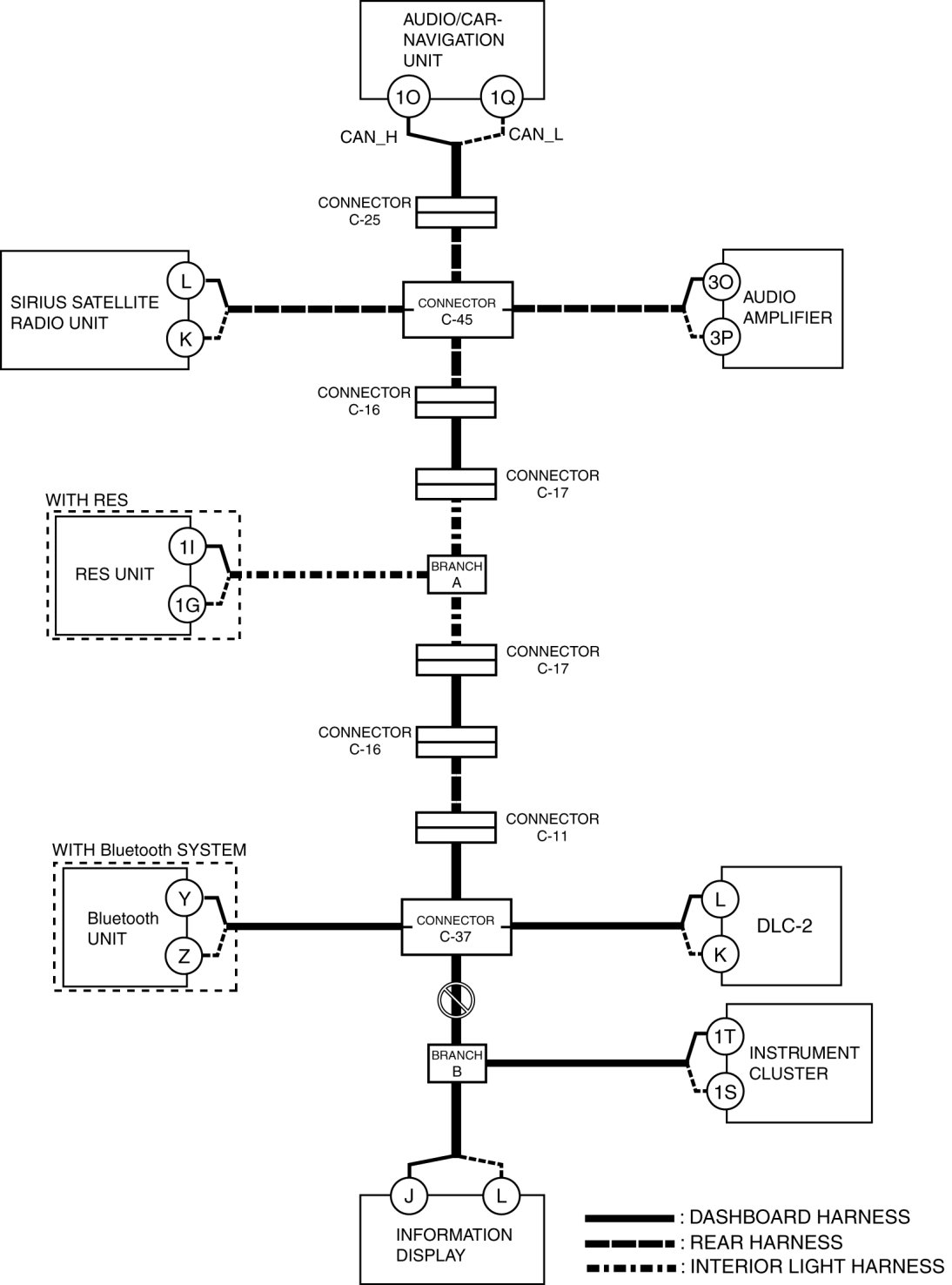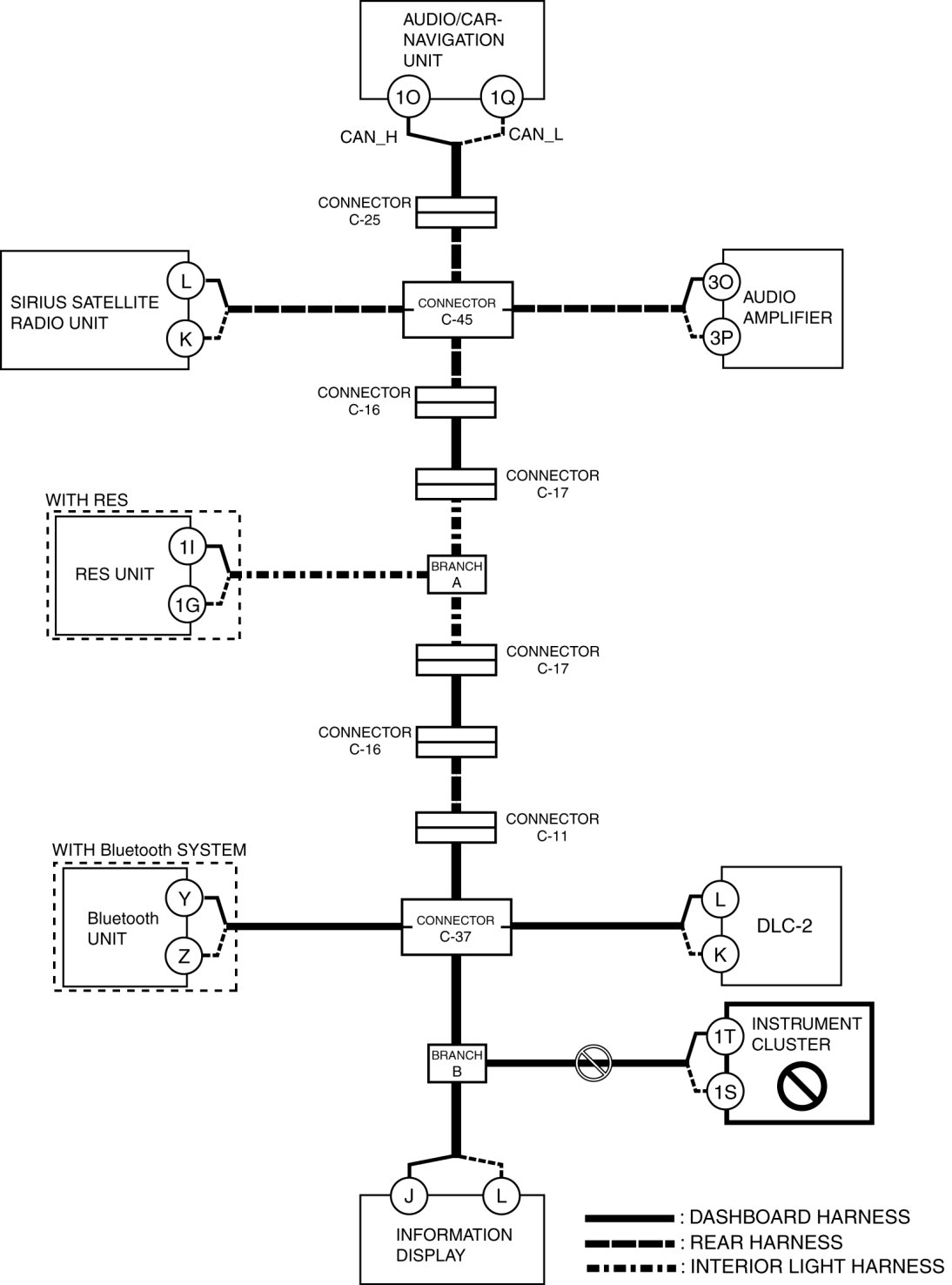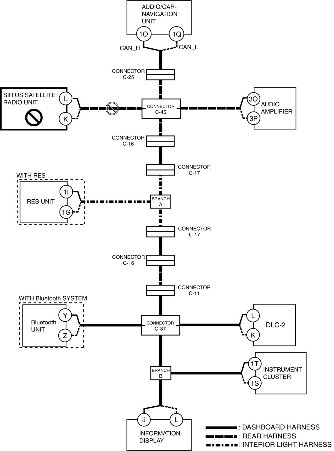 - Wiring harness between audio/car-navigation unit terminal 1Q and connector C-25