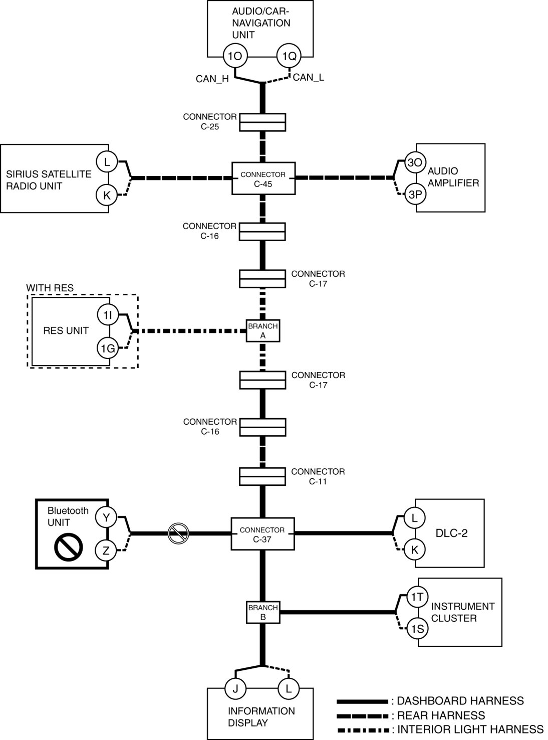 - Wiring harness between Bluetooth unit terminal Z and connector C-37