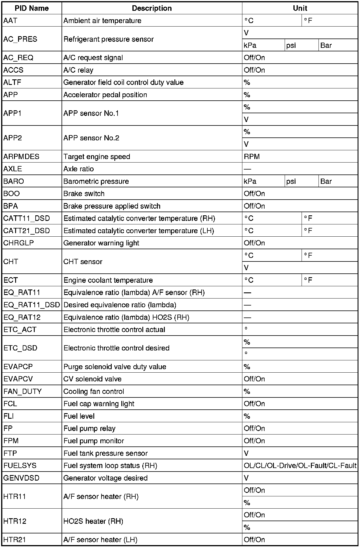 - When detecting DTCs, PIDs related to a malfunctioning system may not display even if the module is normal. Therefore, if a PID is not displayed, it is necessary to verify the DTC, perform malfunction diagnosis of the DTC that was detected, and do repairs.