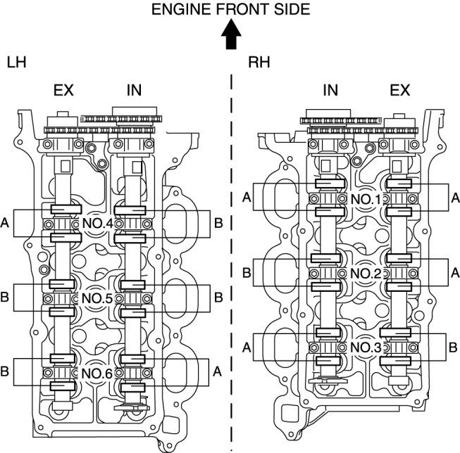 d. Rotate the crankshaft clockwise 360 ° so that the No.5 cylinder is at TDC of the compression stroke.