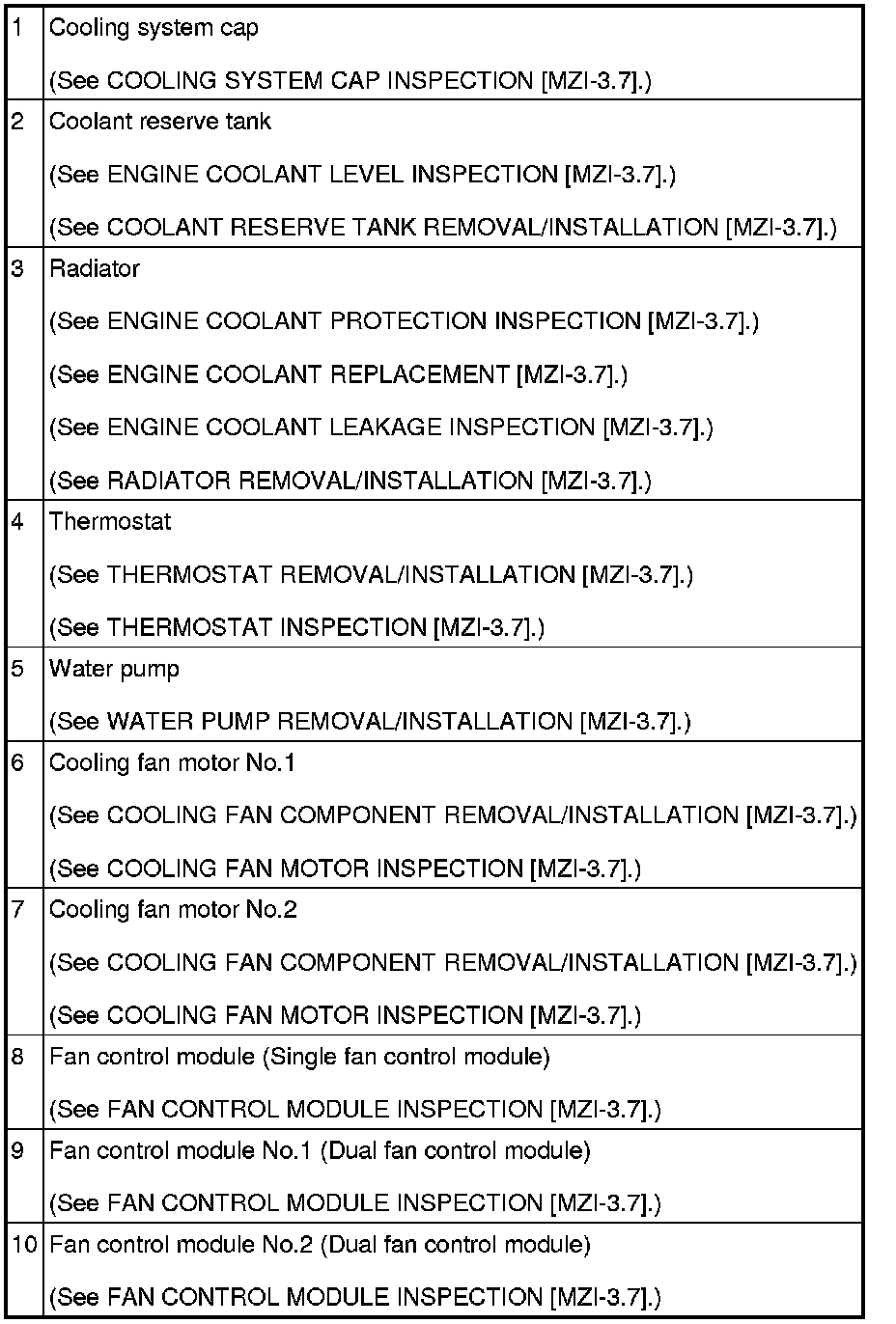 COOLING SYSTEM LOCATION INDEX [MZI-3.7]